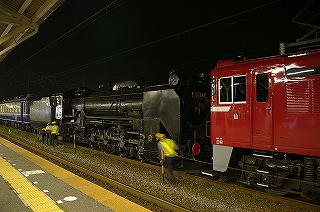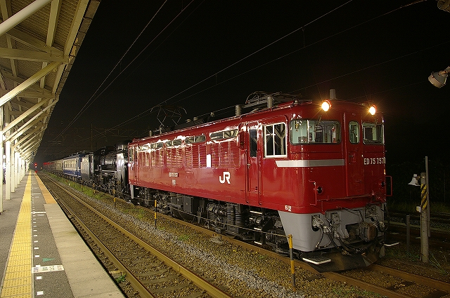 19:22 下りSL回送到着 ED75 757+D51498+オヤ12-1+旧客x5 |