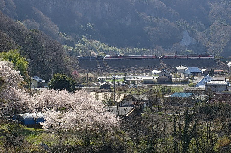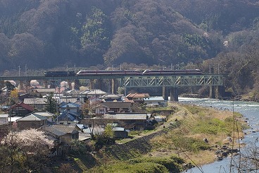 前橋まで少し混んでいたが大した事はなかった。渋川付近のIさん情報で大正橋は「激パ」との事であった。次の撮影ポイントは越後中里のカーブを予定していたが、渋川付近より先の桜が見頃だったので越後中里への追っかけは、桜と撮った後、イチかバチかの勝負にでることにする。8:05津久田〜岩本間(180キロ)着、R17からサイドを狙う。他に鉄道ファンは居ない、貸切り状態だ。HiSE通過後すぐ出発、8:50。ICへの道路から遠くの川沿いを行くHiSEが見えた。 | ||||||