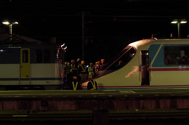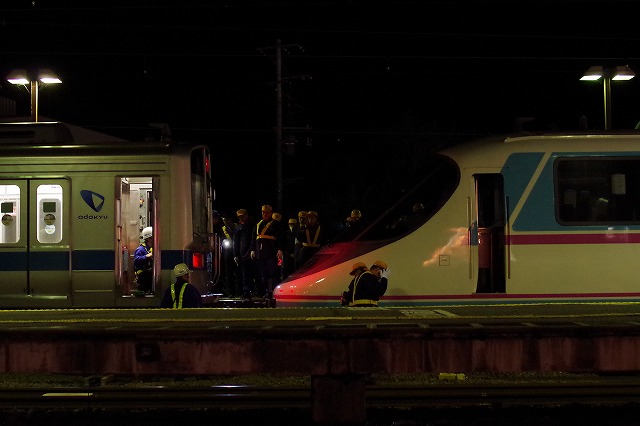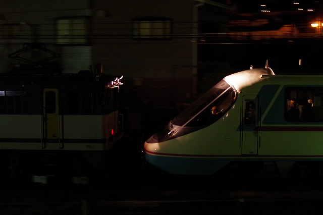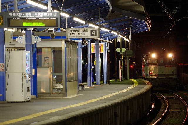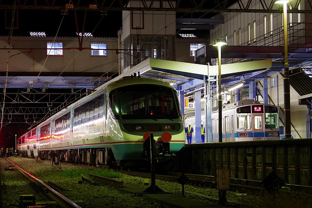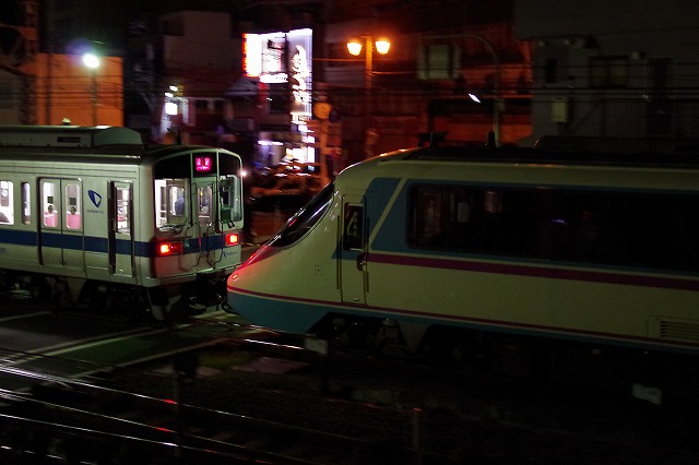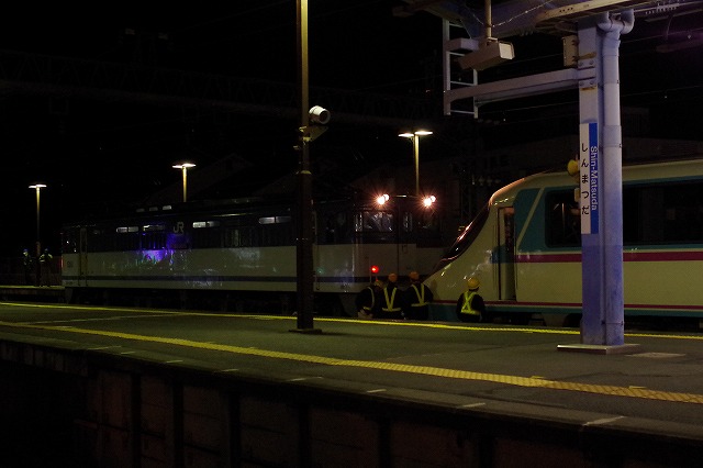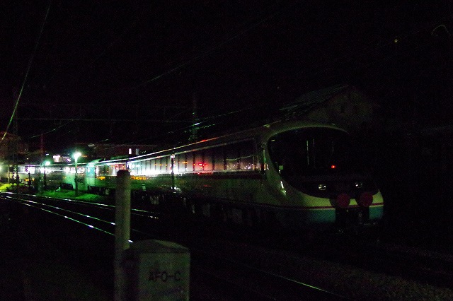 2096の4番線進入が撮れた。まだ終電前なので改札からホームに入る。上りホームは運転終了で、甲種対応のため進入禁止のゲートが出ていたので下りホームから撮影する。終電が到着し、N氏と合流し3人で踏切へ向かい、RSE到着を待つ。同業者は50名程、知り合いがいたので話をしたりして時間を潰すが、この冬一番の冷え込みが身にこたえる。 |
