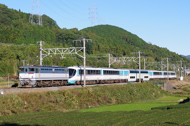| 前のHiSEの時は松田発車も早く、御殿場駅などでも停車がありダイヤに余裕があったが、今回は停車も少なく全般的にスジが立っている感じだ。日の出も遅いのでEF区間は興津鉄橋もパスして金谷〜菊川の一発に賭ける。現地には6:00着、相変わらず寒く、山影から陽が出るのが遅くヤキモキしたが通過時にはバリ晴れで満足のいく一枚になった。 |