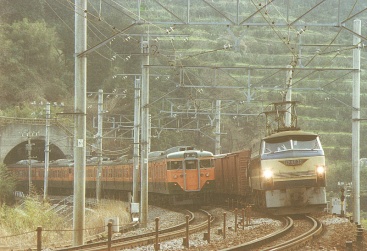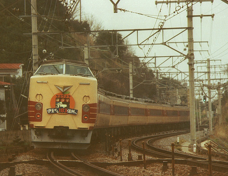 明日の60.3ダイヤ改正を前に183系踊り子のさようなら撮影に、根府川へ。183系踊り子は一往復しかないので、正午に単車で家を出る。12:50根府川鉄橋西側着、鉄道ファン4名。ガードレールに昨日のお召のことの落書きがあった。13:12下り最終183系踊り子11号通過、ヘッドマークのまわりにさようならマークがつけてあった。すぐに米神踏切へ向かう。夕方まで名座や荷電を撮って待つ。 |