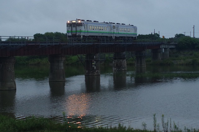 | 今日は移動日、朝の一往復を厚真川鉄橋で撮ってから一気に大沼まで軽バンを走らせる。翌日からは、北海道を発つまで函館本線のキハ40撮影だ。 |