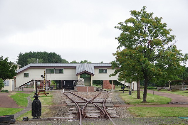 | ロイヤルエクスプレス撮影3日目だが、遠軽駅発着の一発狙いなので時間に余裕があり寄り道。能取湖を5時に出発し、サロマ湖湖畔をのんびりまわり、湧網線計呂地駅跡の交通公園を見学した。営業開始時刻前だが、色々施設が残っていて興味深かった。遠軽駅手前の跨線橋には8時前に着いた。 |